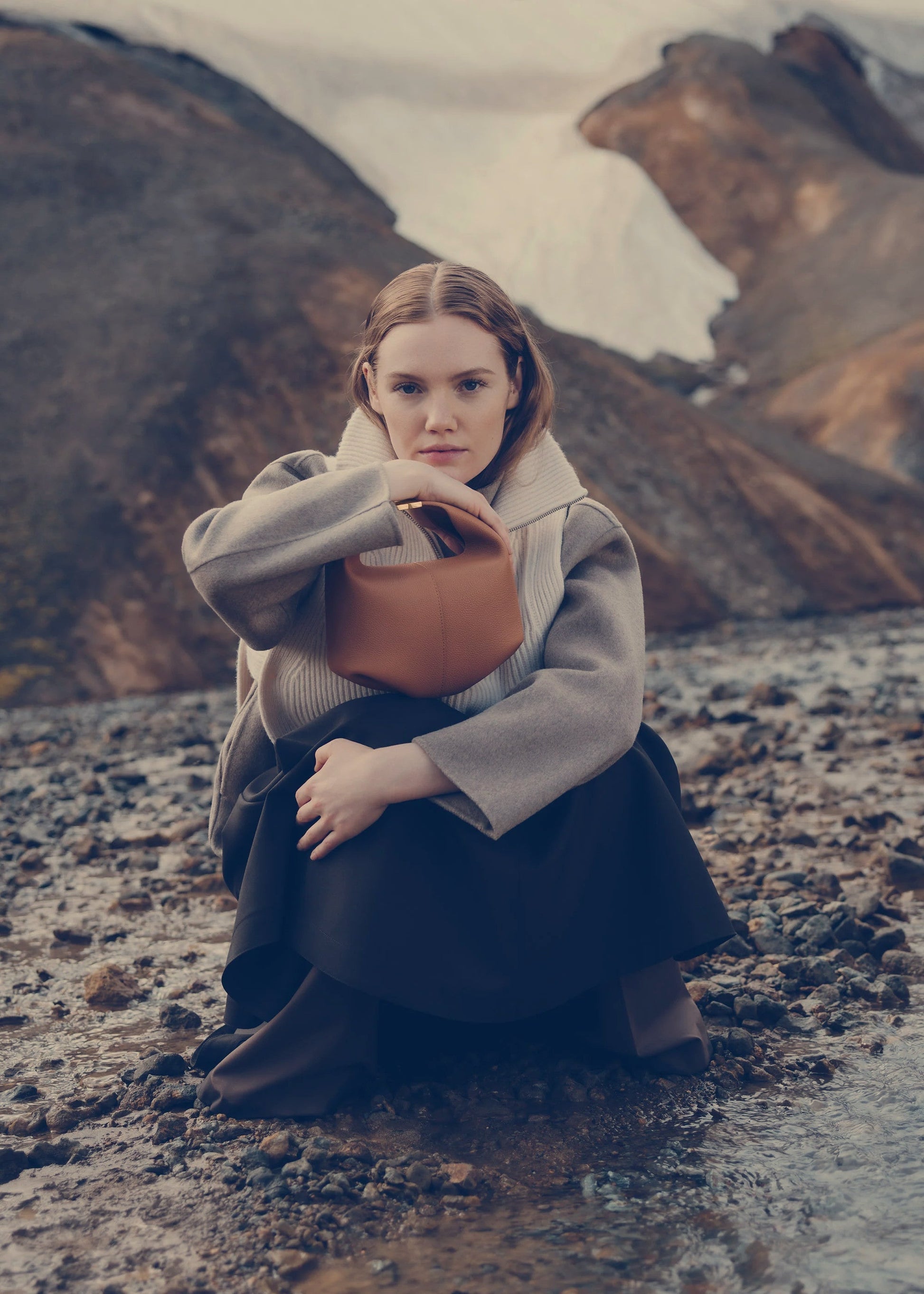 Obtained by folding four pieces of leather and forming the handle, the “Béri” model exudes a strong yet sophisticated style. Its tailored base and central clasp add the perfect touch of character.
