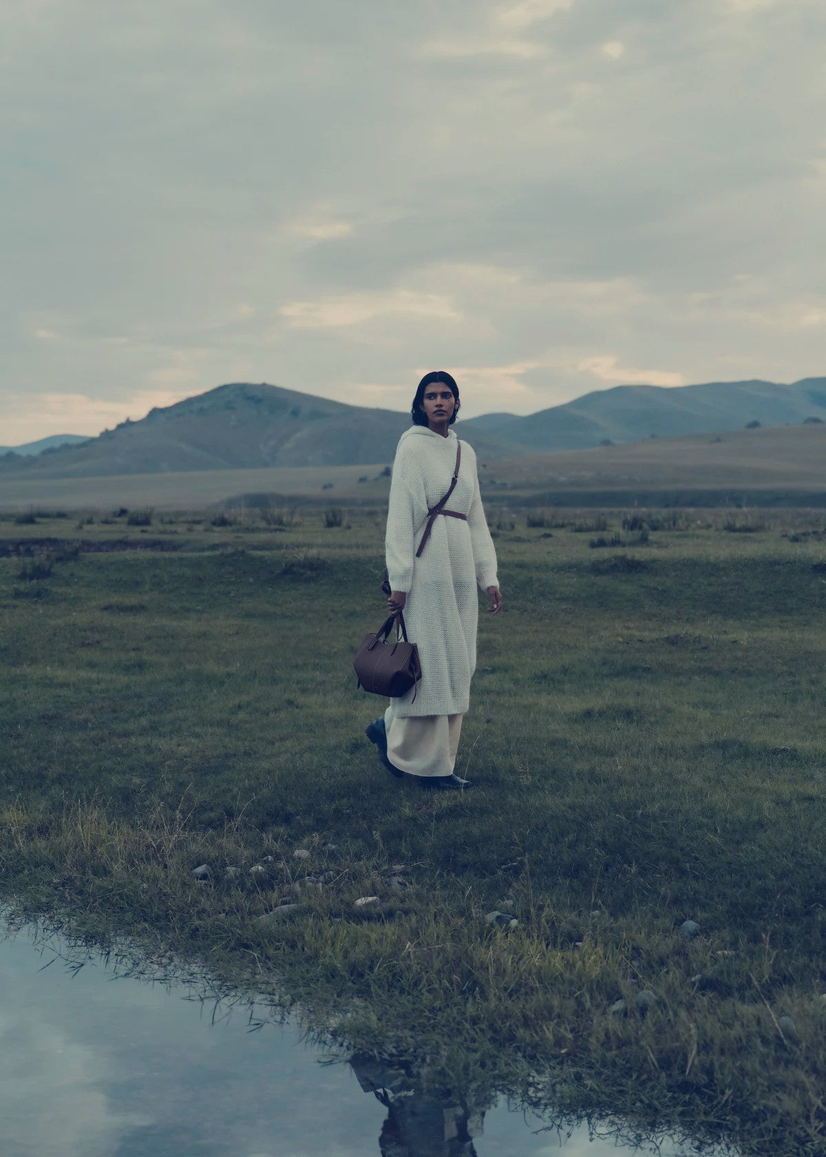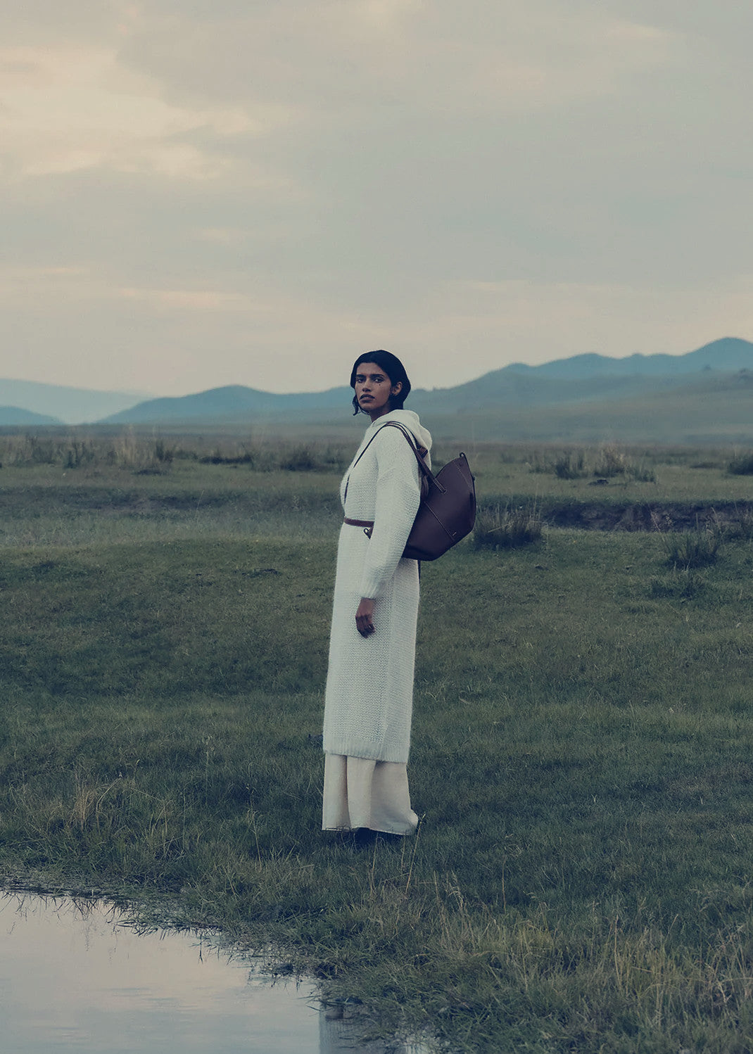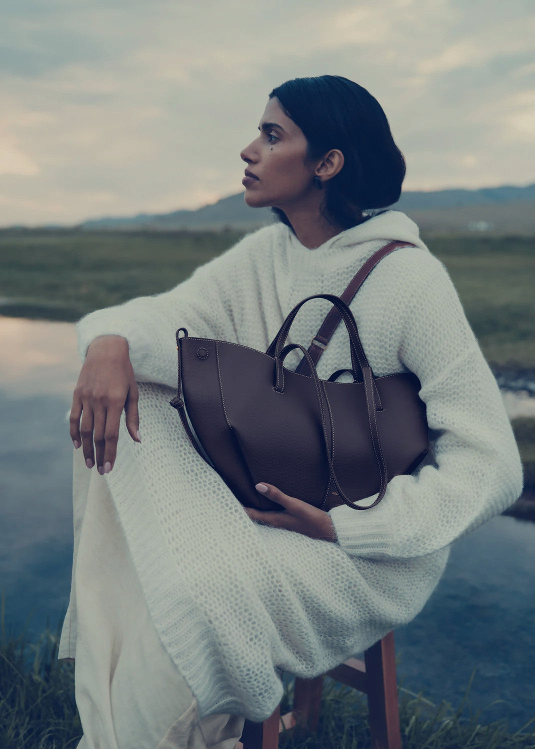 Leathers selected by Polène are sourced from certified European tanneries and require minimal maintenance. A few steps can be taken to maintain the original appearance. Avoid prolonged exposure to direct light or heat, and keep away from water, greasy substances, perfumes, and cosmetics. Use caution with dark or new clothing, as the dye may bleed.