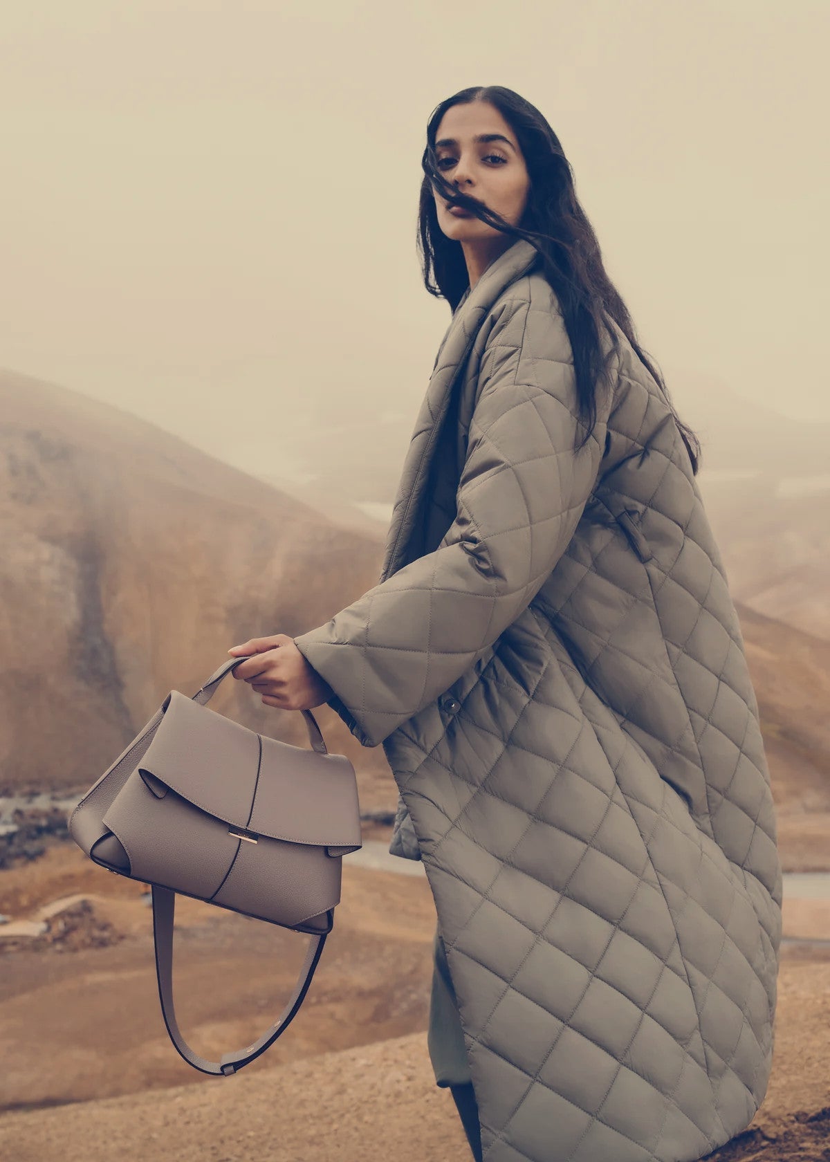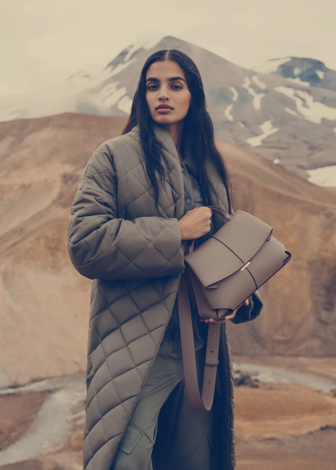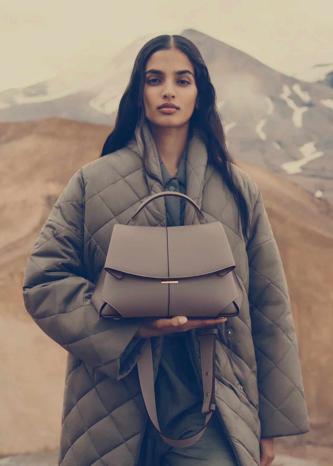 The "Mokki" model showcases the art of folding with its textured leather. The corners are cut to reveal smooth leather for a subtle interplay of textures. The bag’s interior is roomy and divided into compartments, all protected by a flap that features an engraved clasp. With its adjustable shoulder strap held in place by snap hooks, the model smoothly adapts to your movements.
