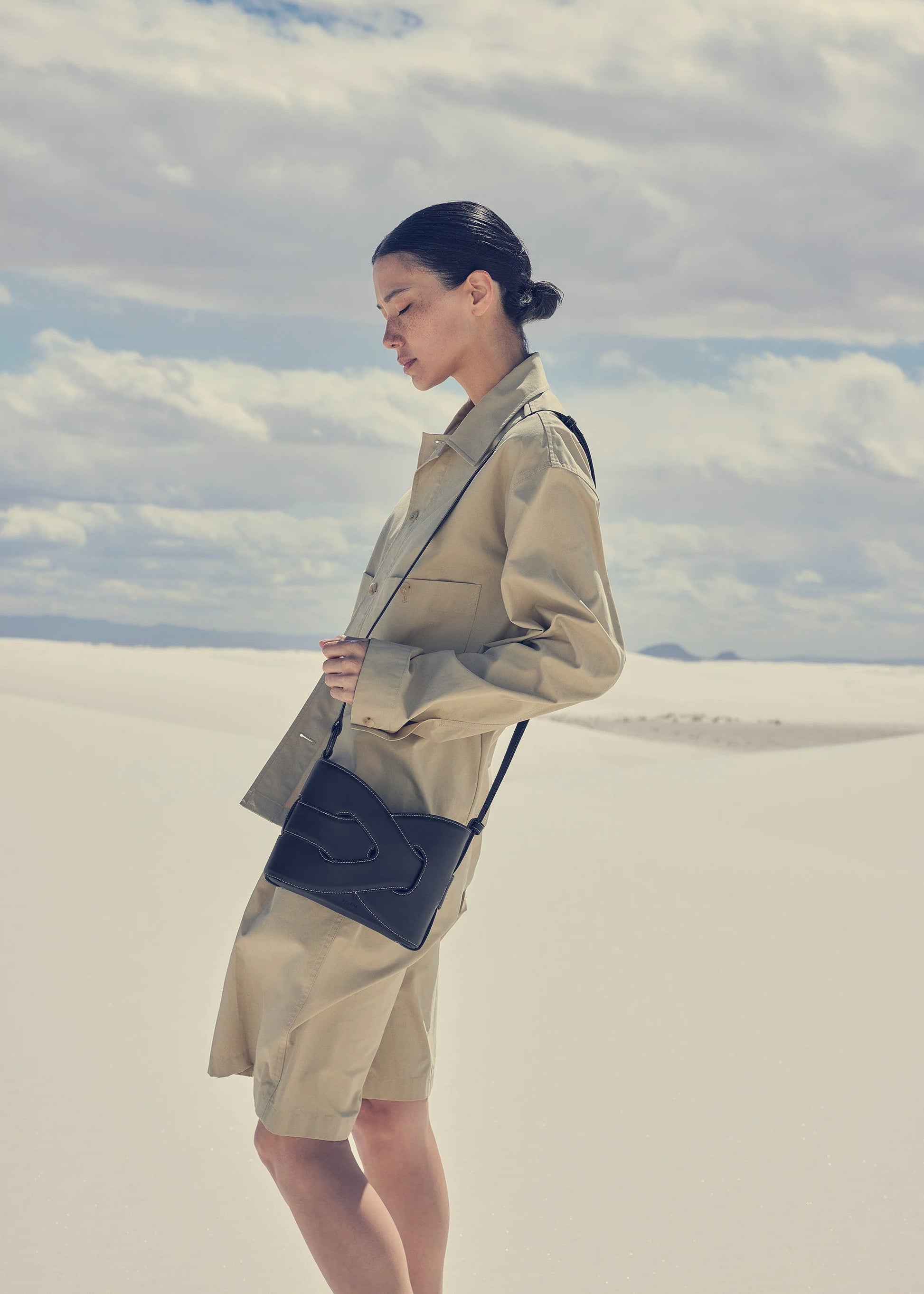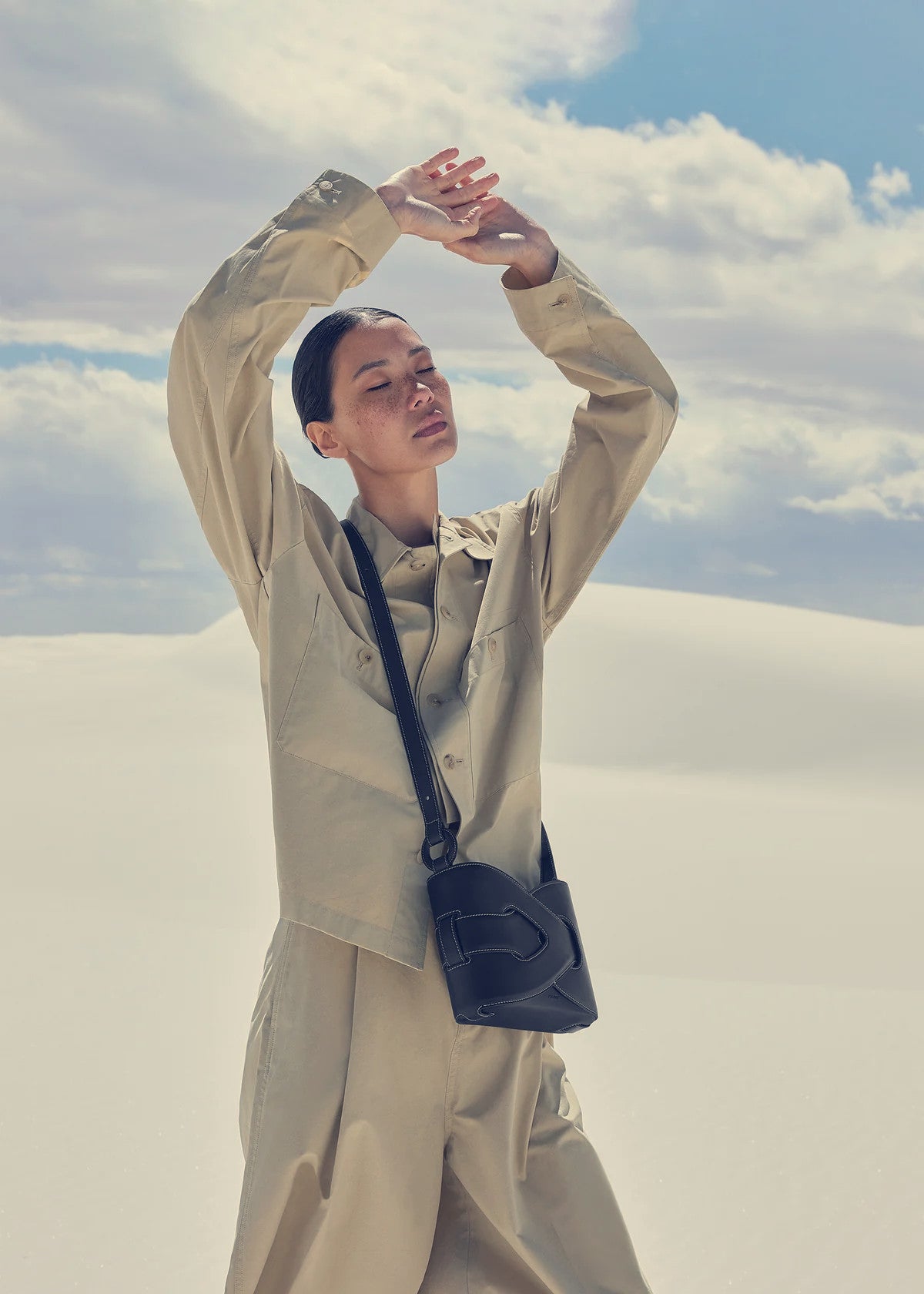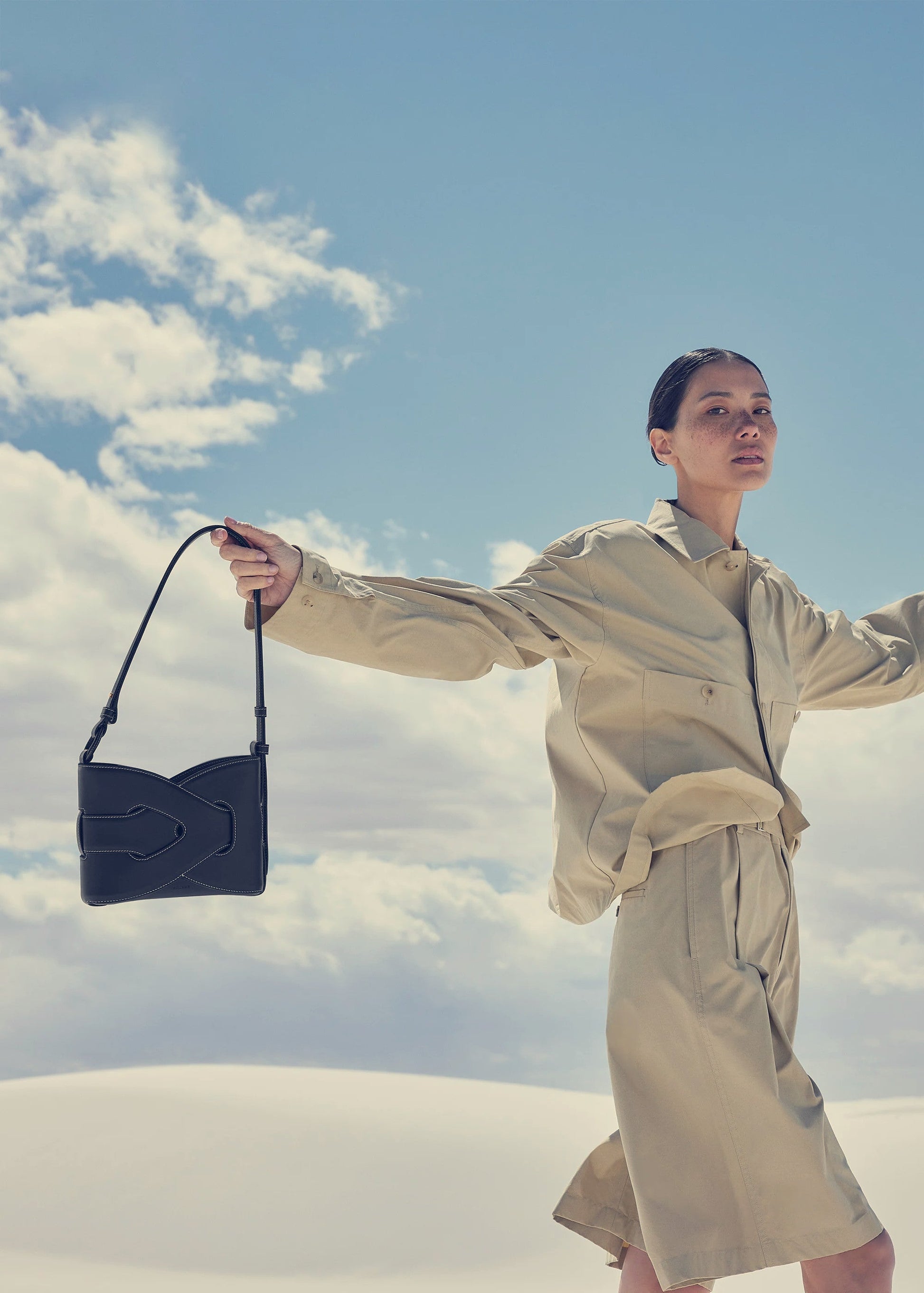 Composed of two matching and intertwined leather modules, the “Nodde” model is a bag with interlaced lines, highlighted by meticulous stitching and perfect symmetry.