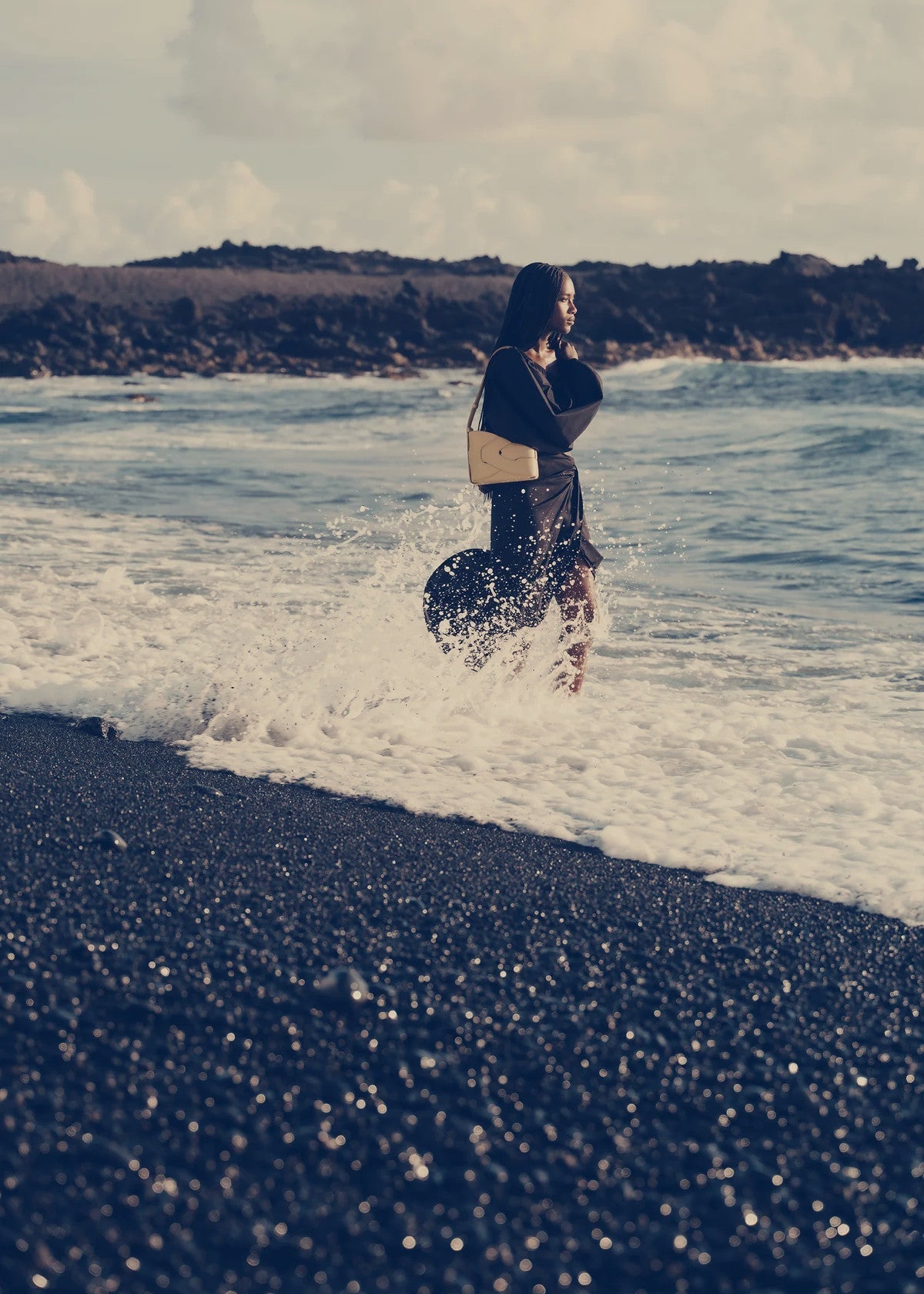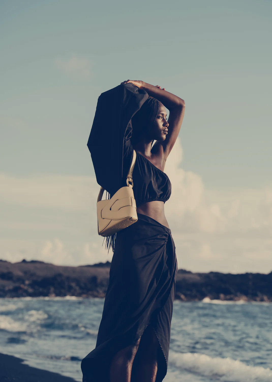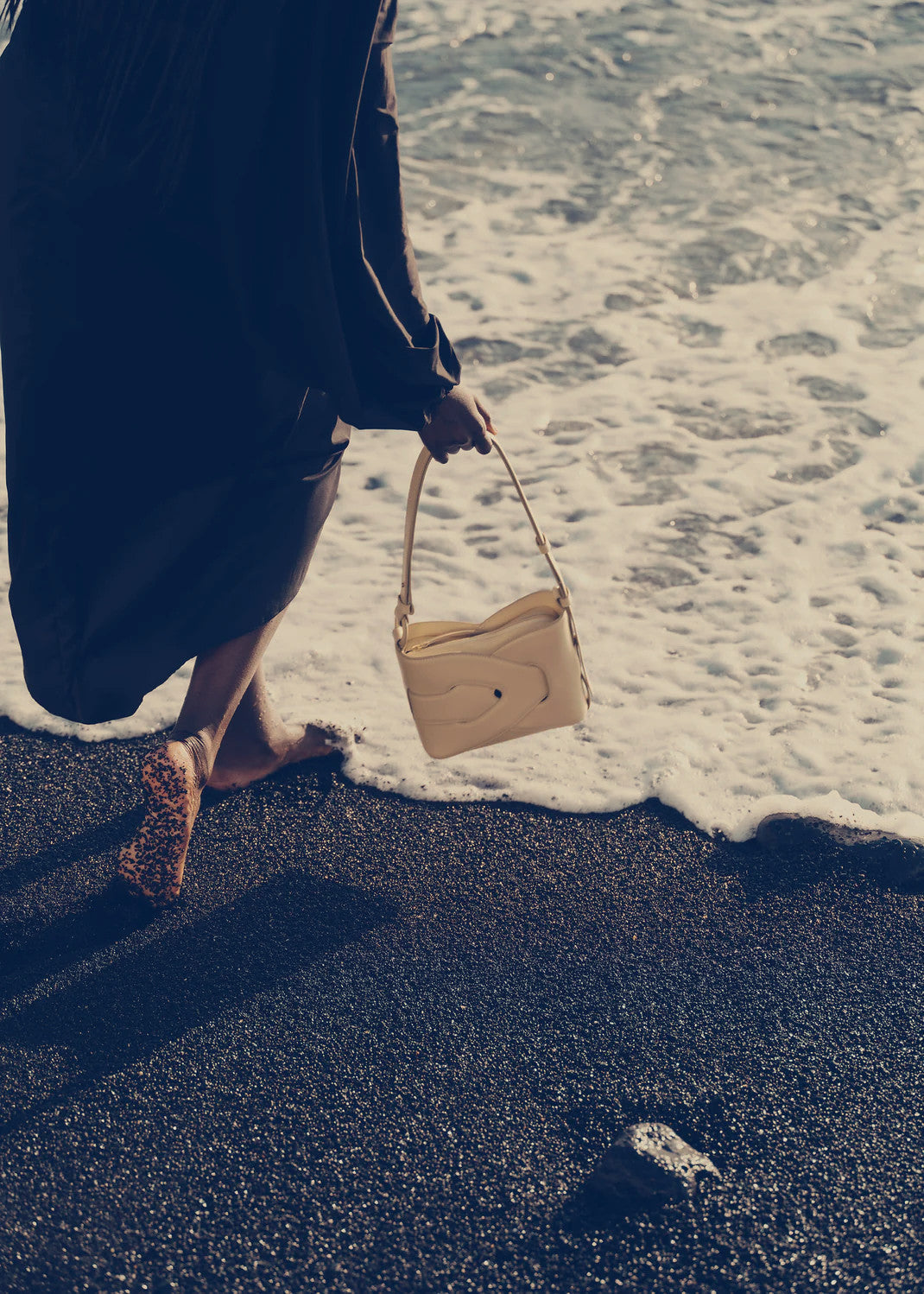 Composed of two matching and intertwined leather modules, the “Nodde” model is a bag with interlaced lines, highlighted by meticulous stitching and perfect symmetry.