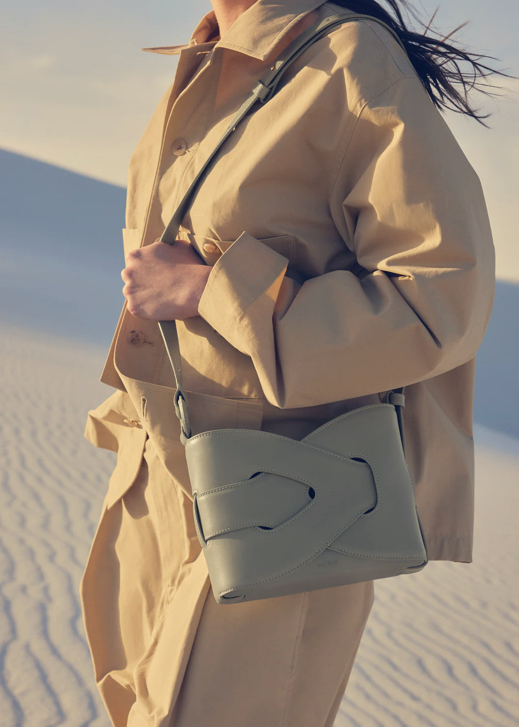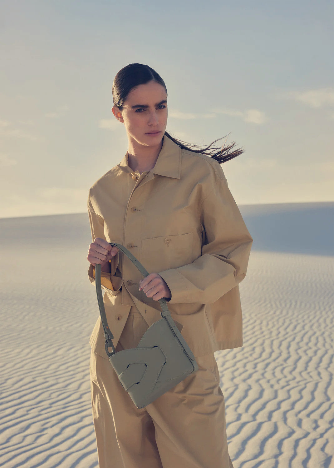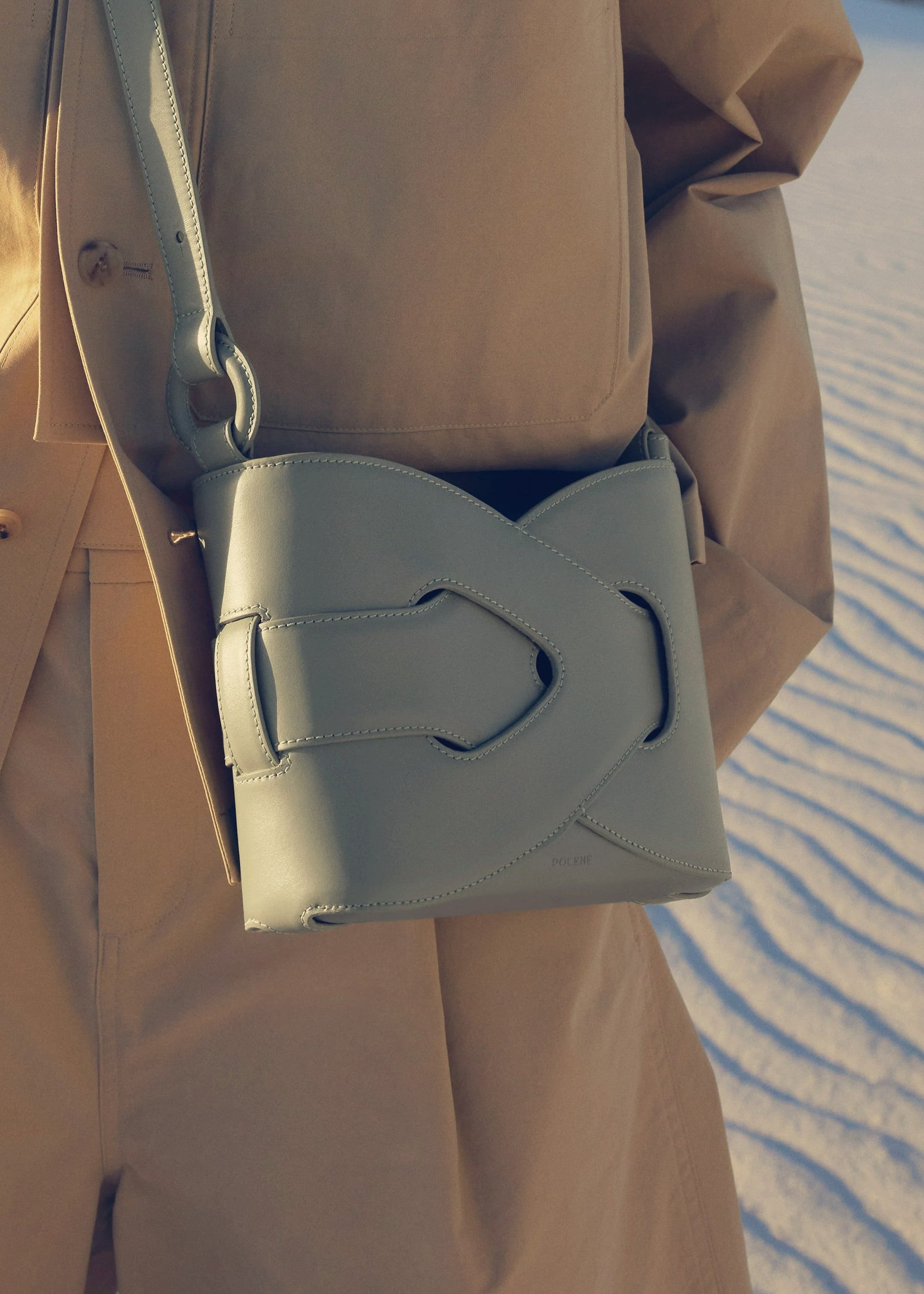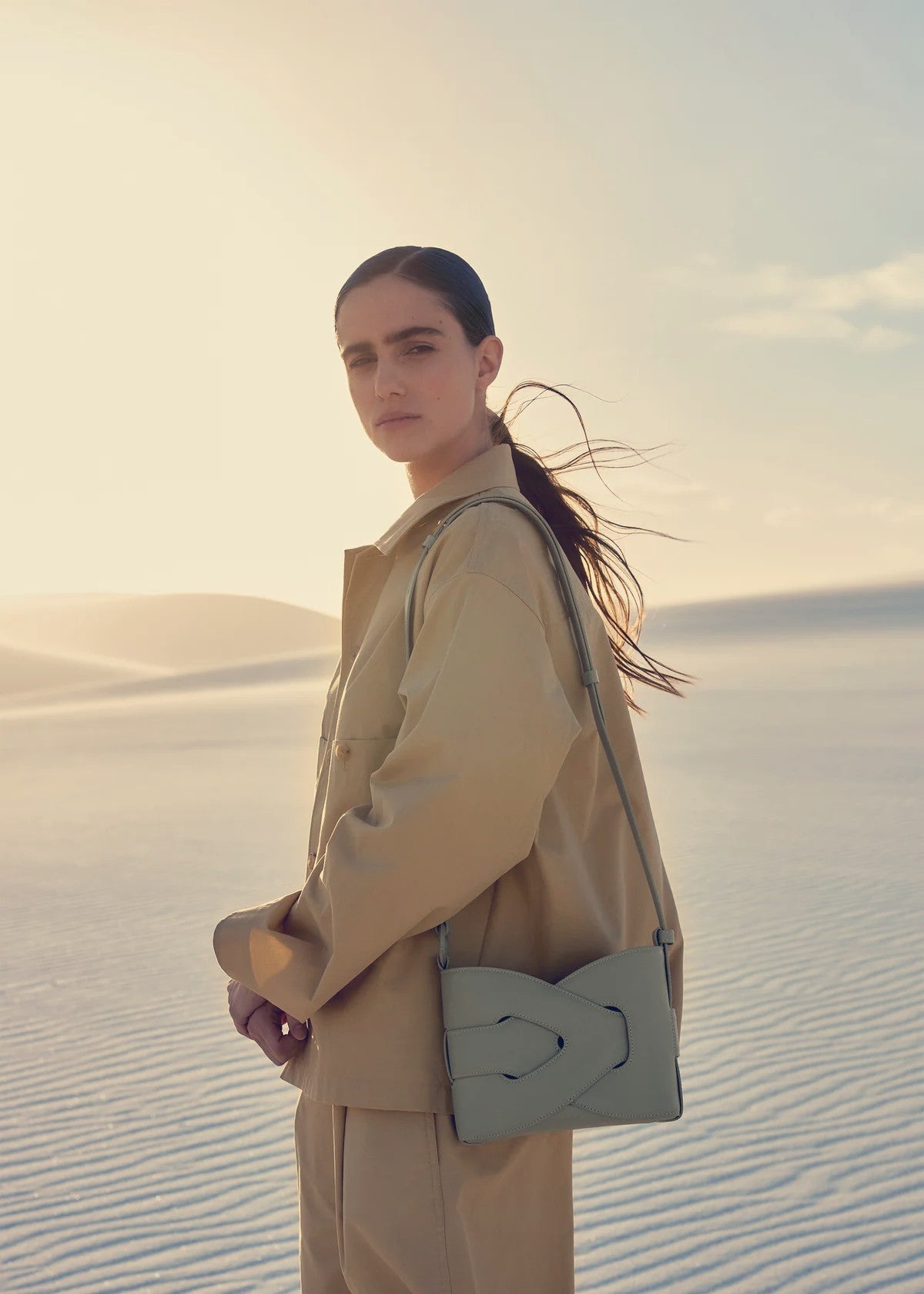 Composed of two matching and intertwined leather modules, the “Nodde” model is a bag with interlaced lines, highlighted by meticulous stitching and perfect symmetry.