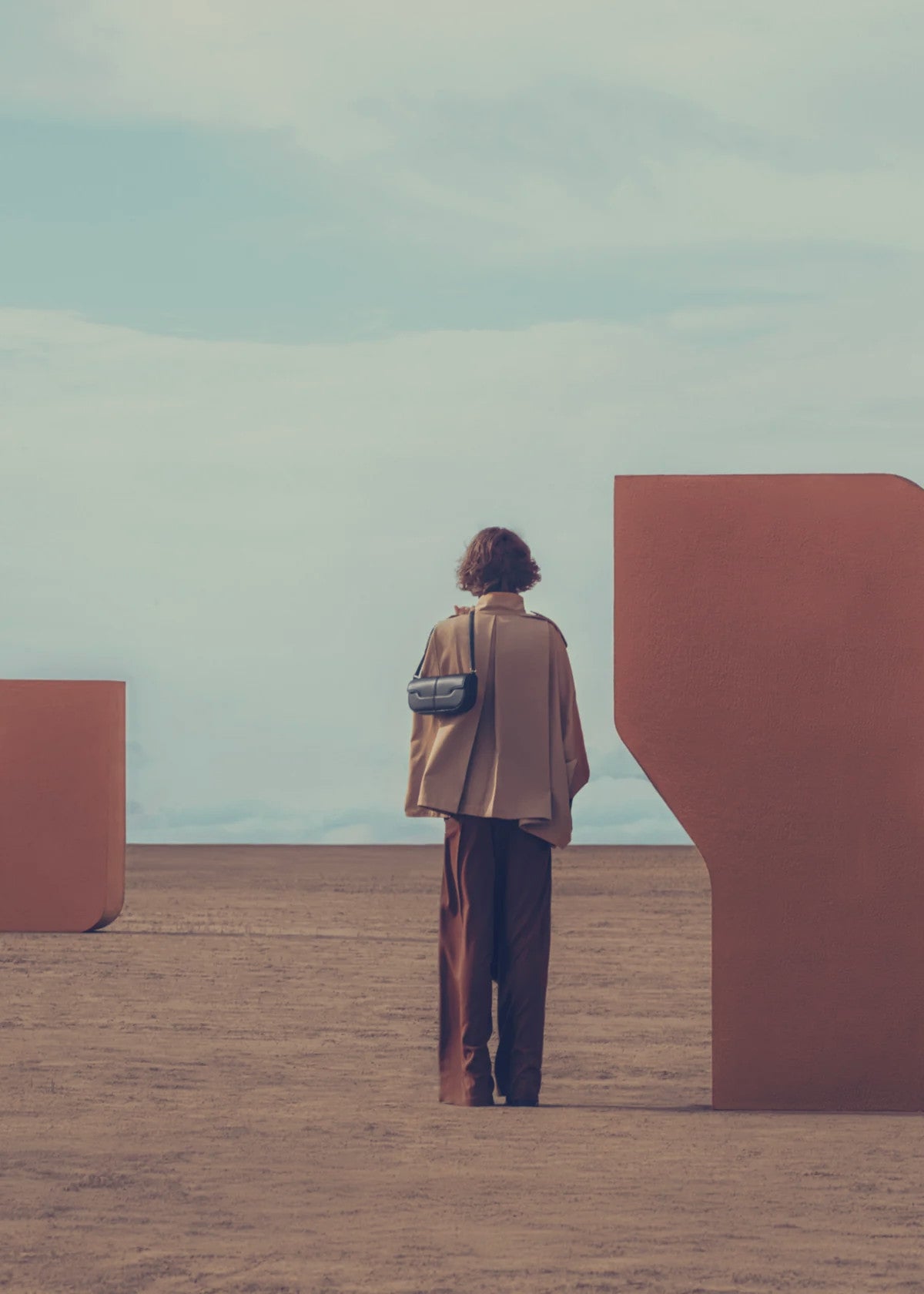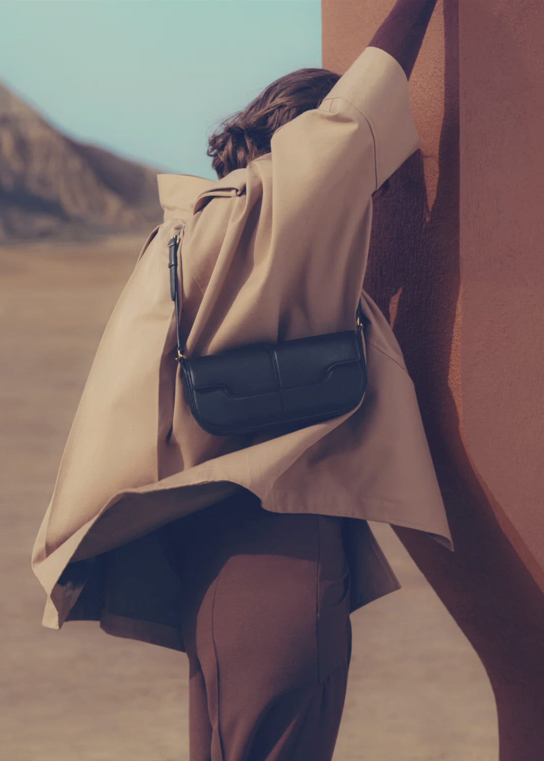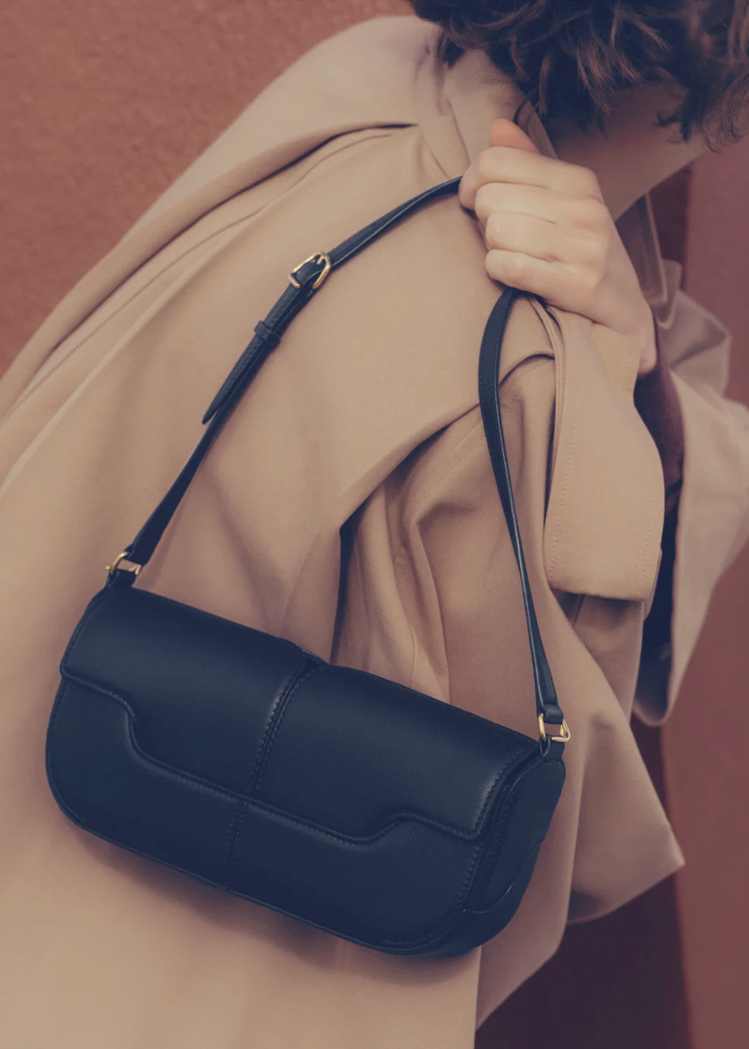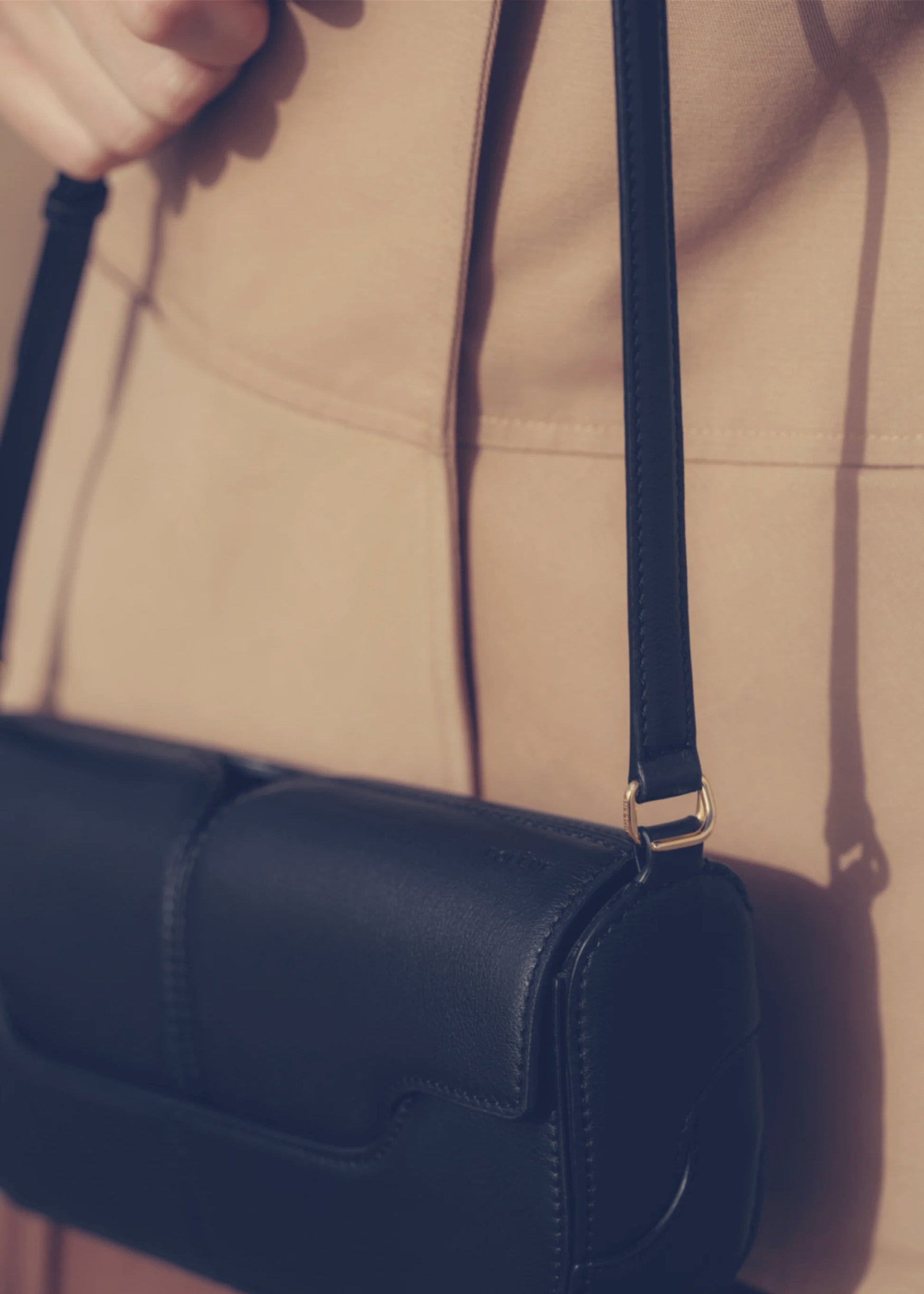 The Osmo model’s design is constructed using mirrored leather segments that interlock to form a symmetrical whole. With its flap closure, this finely made bag is cut from smooth nappa calf leather, known for its natural beauty and distinctive feel, which covers the bag’s interior and exterior. The adjustable shoulder strap can be worn short, “baguette” style.
