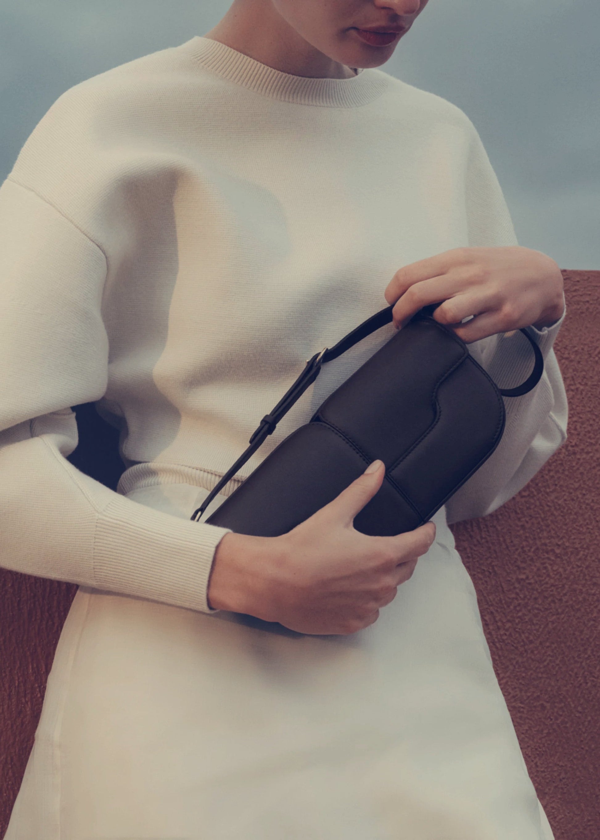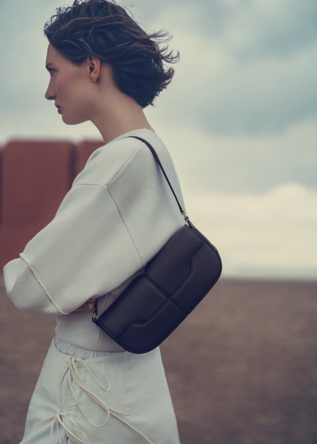 The Osmo model’s design is constructed using mirrored leather segments that interlock to form a symmetrical whole. With its flap closure, this finely made bag is cut from smooth nappa calf leather, known for its natural beauty and distinctive feel, which covers the bag’s interior and exterior. The adjustable shoulder strap can be worn short, “baguette” style.